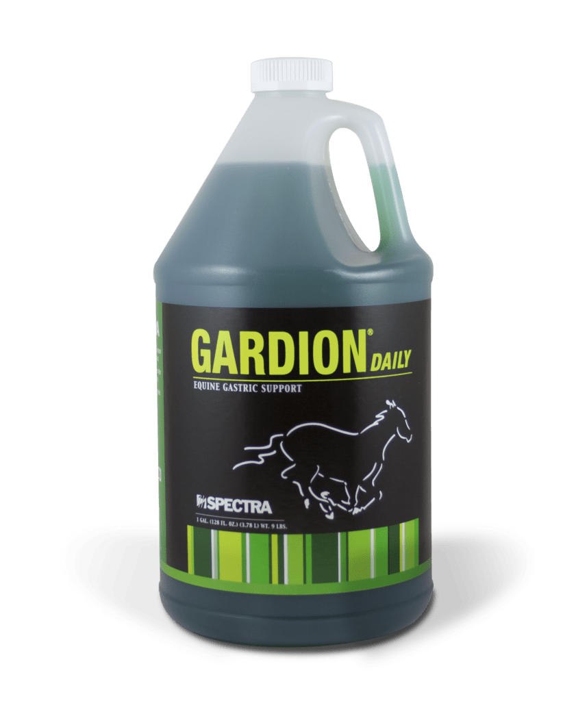 GARDION Equine Gastric Support is a liquid solution of nutrients and herbs formulated to create a healthy environment in the gastrointestinal system in an effort to prevent problems from occurring. Approximately 80% of horses have stomach problems due to food consumption and the stress of heavy training. The gastrointestinal tract has a large number of immune cells. GARDION provides nourishment for these cells and metabolic fuel for their growth and proliferation.