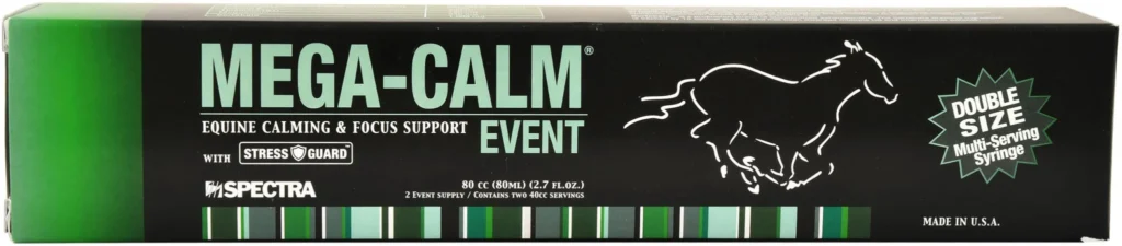 Mega-Calm Event Paste is a fast acting equine calming formula designed for high stress situation like showing or traveling. It combines Mega-Calm powder with Stress Guard™ to support focus and reduce nervousness within 1–2 hours without causing drowsiness.